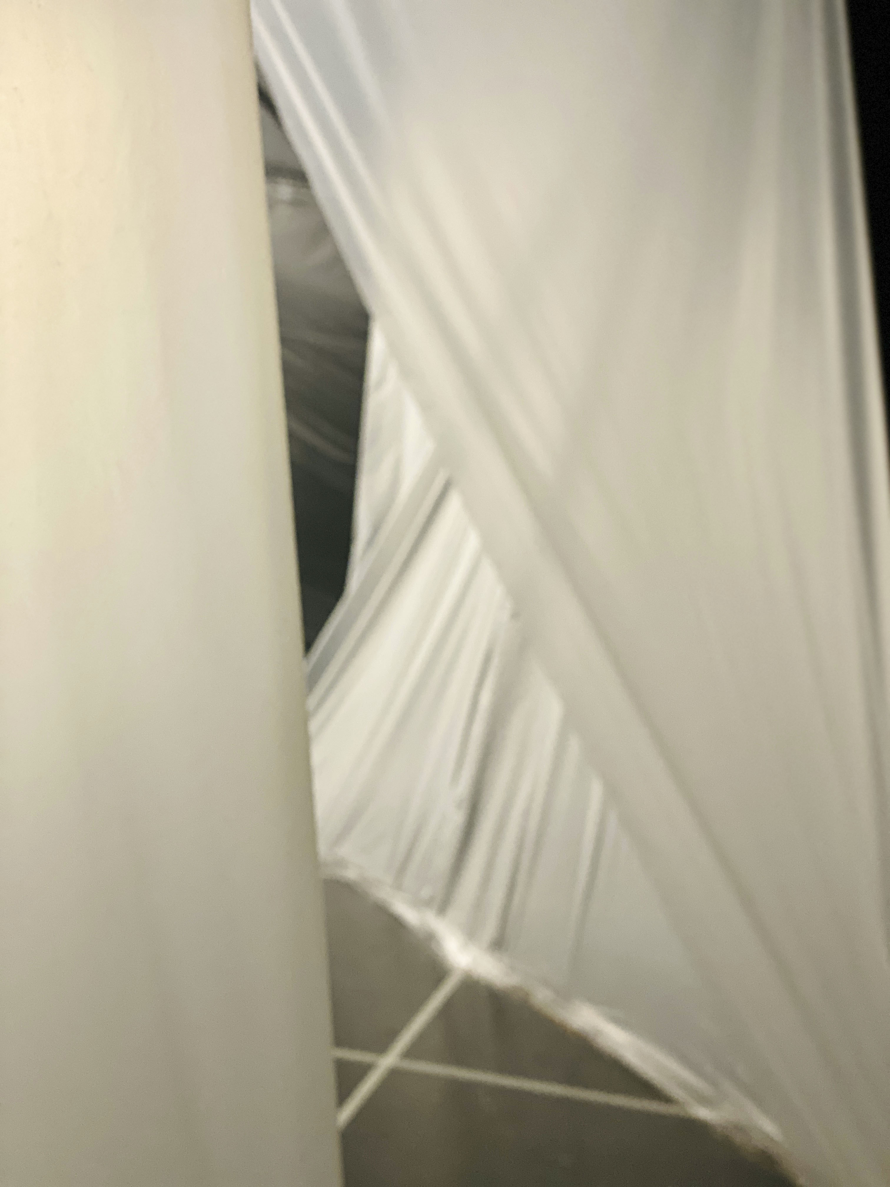 Anstelle jedoch das Dispositiv einer ‚klassisch (natur-)wissenschaftlichen‘ Ausstellungsgestaltung zu bemühen, resultierte die achtmonatige Auseinandersetzung mit Mycelium und dessen Kultivierung in einer multi-medialen Installation, die zwischen Fremdheit, Affizierung und Mehrstimmigkeit oszillierte. So entfaltete sich eine halbtransparente, amorphe Form im Dunkeln während Visuals wachsender Hyphenfäden an den Wänden entlangkrochen. In der Mitte des Gebildes prangte ein leuchtend-weißer Würfel, dessen Inneres an ein steriles Labor erinnerte. Um hineinzugelangen, mussten sich die BesucherInnen selbst einem „Reinigungsprozess“ unterziehen, indem sie weiße Schutzanzüge, klinische Handschuhe und Schuhüberzieher anlegten. Wer nun genau sich vor wem in diesem utopisch-dystopischen Arrangement schützte, blieb bewusst unbeantwortet. So wandelten die Gäste in jener szenografischen Ambiguität aus wissenschaftlich-aufklärerischem White-Cube und dunkel affizierender Blackbox während eine anschwellende, polyphone 4-Kanal Soundebene die Szenerie untermalte.